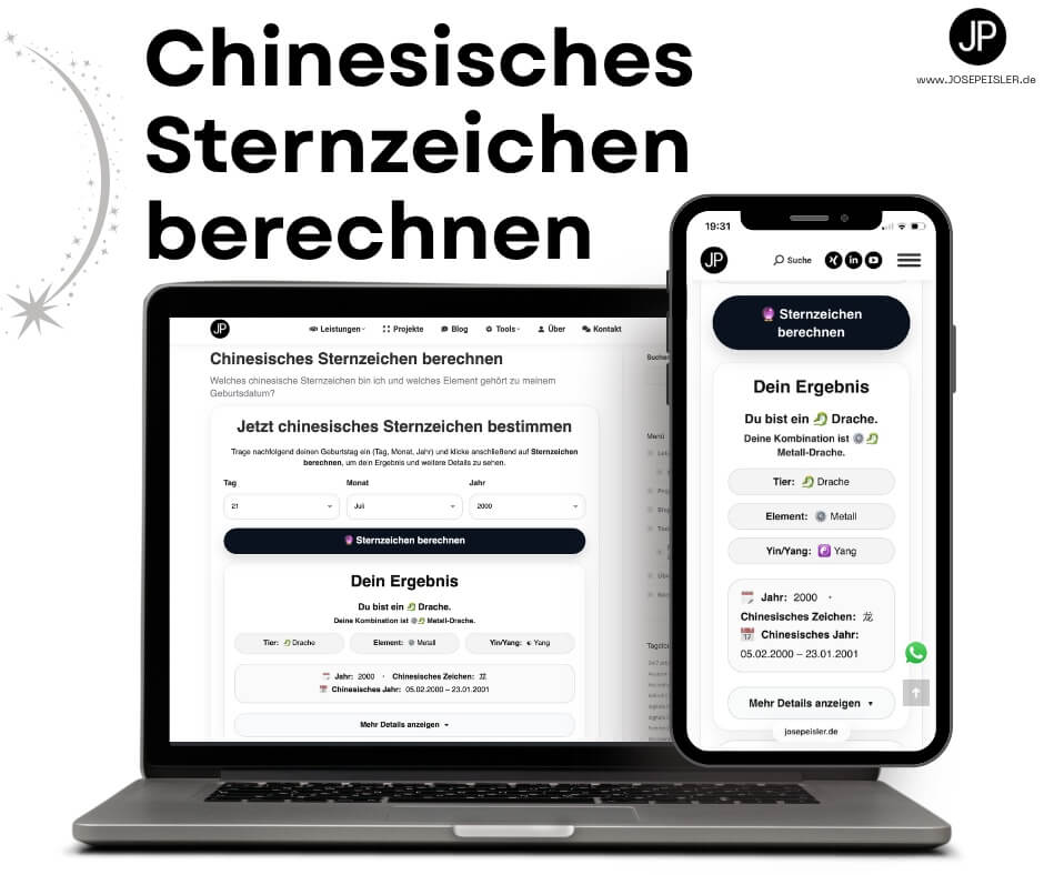 Das Tool zeigt dir diese Zuordnung explizit an, damit dein chinesisches Sternzeichen vollständig eingeordnet werden kann.