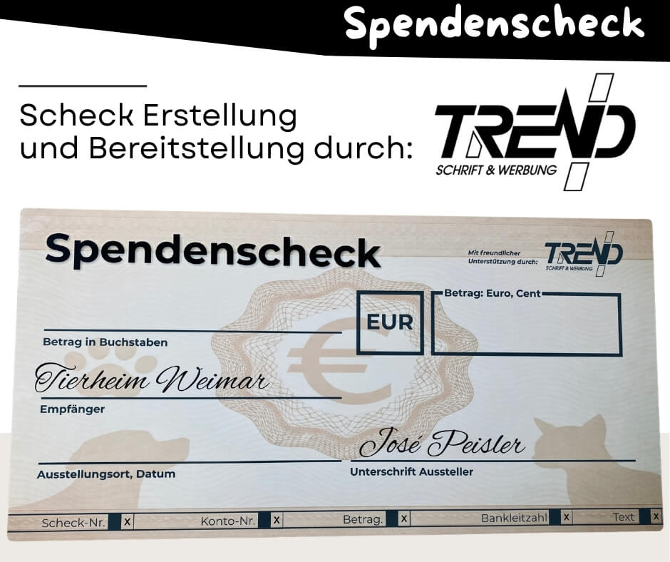 Ein riesiges Dankeschön für die Unterstützung bei der offiziellen Spendenübergabe. Durch die Erstellung und Bereitstellung des Spendenschecks hat Trend Werbung Weimar der Aktion einen professionellen Rahmen gegeben. Der Spendenscheck wurde dabei so gestaltet, dass er einmal erstellt wurde und auch in den kommenden Jahren weiterverwendet werden kann.